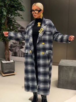 Стильное пальто schiaparelli premium качества, выполнена из шерсти, весна, двубортная модель, корректирующий эффект, со шлицей, выполнено в прямом силуэте, английский воротник, хлопковый подклад, два рабочих накладных кармана, дорогая фурнитура, в комплекте прилагается запасная пуговица, длинна изделия: 120 см.