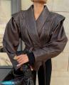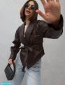 Косуха в трендовой посадке с акцентами на плечи.