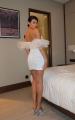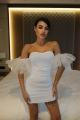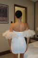 Мини-платье без бретелей с пышными прозрачными рукавами эффектный вариант для вечернего выхода.
