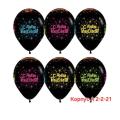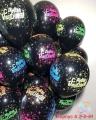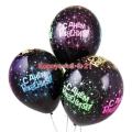 Воздушный шар чeрный с неоновым рисунком с надписью с днeм рождения!.