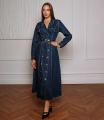 Двубортный фасон с двумя рядами металлических пуговиц золотистого цвета, которые служат ярким декоративным акцентом Воротник: классический отложной воротник с лацканами, как у пиджака или тренча.