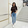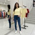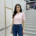 Вязаное кружевной футболка с эффектом корсета и шнуровкой на спинке подчркивает талию и делает силуэт аккуратным.