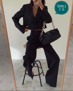 Получили классический костюм двойка комплект состоит из укороченного пиджака и брюк палаццо которые создают одновременно строгий и стильный.
