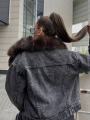 Джинсовая куртка мех песец, утепленная, длина 60 см.