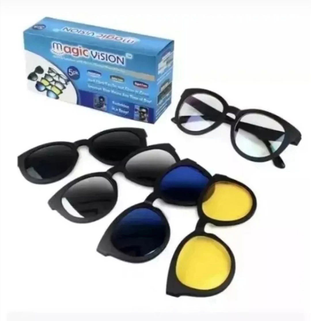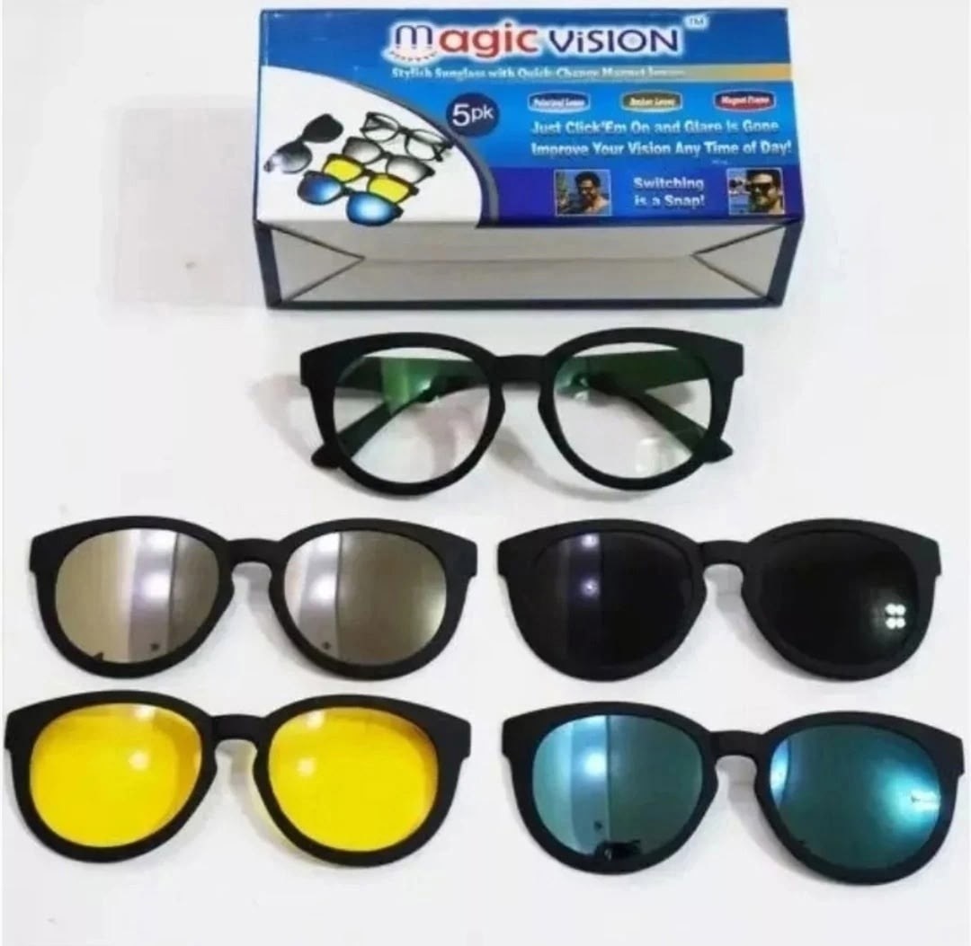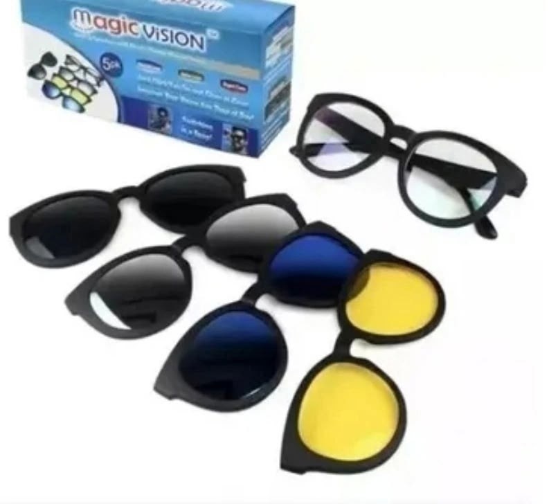 Это набор линз, предназначенный для широкого пользователя В комплект очки magic vision с прозрачными линзами входят дополнительные линзы желтого, зеркального, черного и синего цвета, которые крепятся на очки с помощью мощного магнита Антибликовые очки придутся по вкусу велосипедистам и просто поклонникам вечерних прогулок Они нейтрализуют блики от фар и мокрого асфальта в темное время суток в сумерки Солнцезащитные очки незаменимы для водителей, а также на рыбалке, так как убирают блики на воде от солнца Они повышают контрастность при ярком солнце и изрядно сокращают блики.