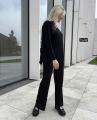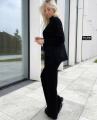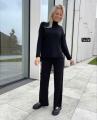 Полная длина штанов, обьемная кофточка со стоечкой.