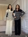 Широкие брюки с высокой посадкой на резинке.