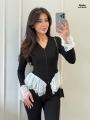 Уникальный женский комплект,стильная укороченная кофточка с гипюром на молнией, клещевые штаны.