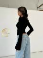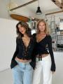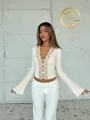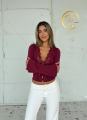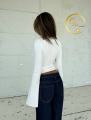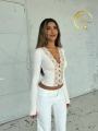Женственный лонгслив-топ с кружевной вставкой и пуговицами.
