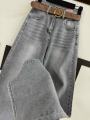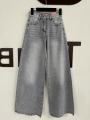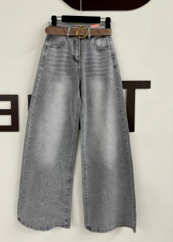 Джинсы широкие палаццо со стразами