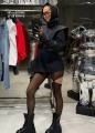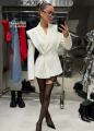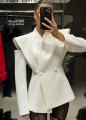 Акцентный пиджак с эффектными крыльями на плечах вытягивает силуэт и делает образ как с подиума.