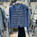 Трендовый джинсовый жакет в стиле наполеон.