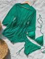 Шикарный тропический купальник тройка: бикини и комбинезон.