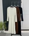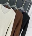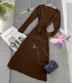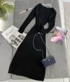 Вязаные v - образные платье-лапша с длинным рукавом.