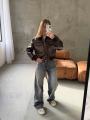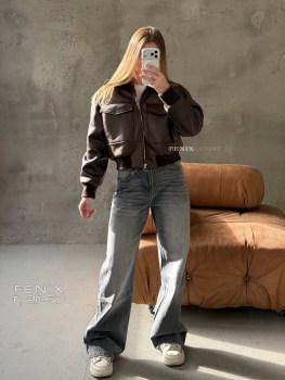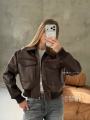 В наличии трендовый шоколадный кожаный бомбер.