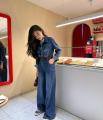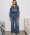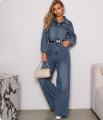 Стильный джинсовый комбинезон с широкими брюками и акцентом на талии идеальный баланс комфорта и тренда Плотный деним красиво держит форму, рубашечный верх добавляет аккуратности, а пояс подчркивает силуэт.