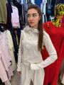 Костюм с брюками, с ажурным капюшоном.