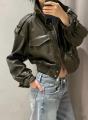 Женские куртки, модный кожаная куртка-бомбер для осень и весна 2026, с длинным рукавом и высоким.