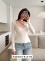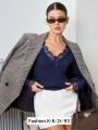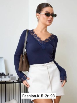 Трендовый лонгслив с глубоким v-вырезом и ажурной гипюрной вставкой по декольте и манжетам Эффектно подчеркивает линию шеи и смотрится женственно с джинсами, брюками и юбками.