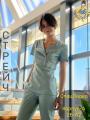 Состоит из куртки приталенного кроя с коротким рукавом и брюк зауженных к низу (декорированы кнопкамис удобными карманами.