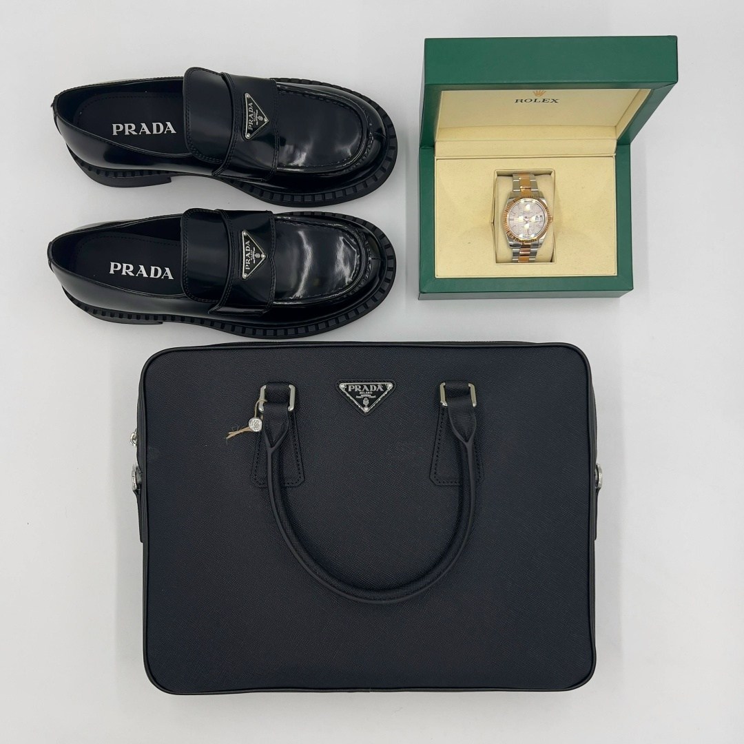 С этими тремя атрибутами достатка портфелем prada saffiano за 28 000 руб , мужскими лоферами prada от 17 000 руб И часами rolex date just за 65 000 руб вы мгновенно подниметесь на новый уровень Двери в элитные клубы, бизнес-встречи и престижные круги откроются сами собой!.