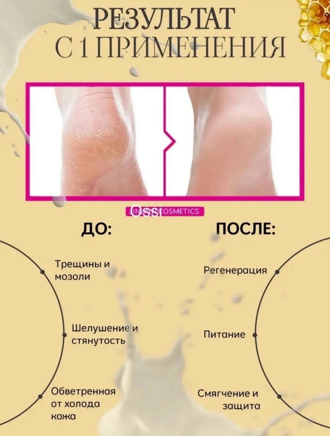 Подходит для ухода за особыми зонами: локтями, коленями, пятками ожет использоваться для увлажнения и питания кутикулы.