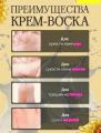 Воск -средство от трещин для очень сухой кожи Входящие в состав продукта масла (кокосовое, пальмы, ши, шалфея) питают, увлажняют кожу, придают ей гладкость и нежность Дпантенол, экстракты ромашки и подорожника оказывают заживляющее действие Пчелиный воск нейтрализует воспалительные процессы Крем-воск смягчает, заполняет трещинки, помогает ускорить восстановление кожи Идеально.