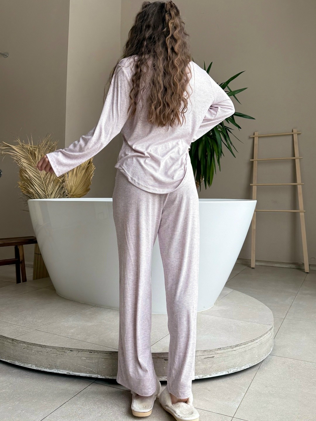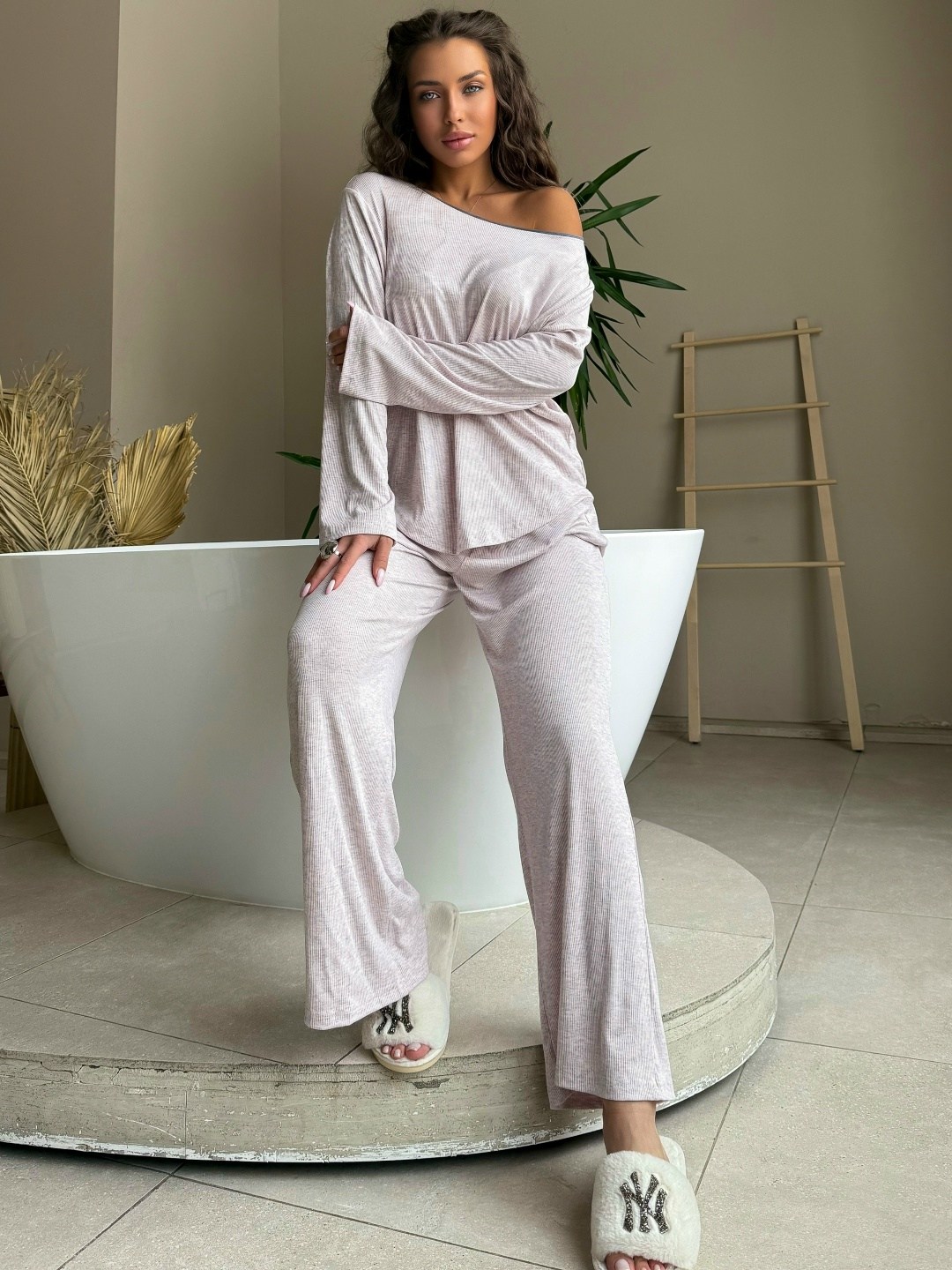 Свободный пижамный костюм из нежной рибаны: расслабленный крой, спущенное плечо и идеальная посадка Лгкий, уютный и стильный для дома, отдыха и тех самых моментов для себя.