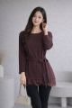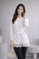 Туника с длинными рукавами, украшенная изящным гипюром по низу, выглядит нежно и утончнно Лгкая драпировка красиво подчркивает силуэт, а кружевная отделка добавляет образу женственности и аккуратной элегантности.