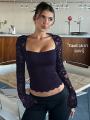 Лонгслив с кружевными рукавами клеш.