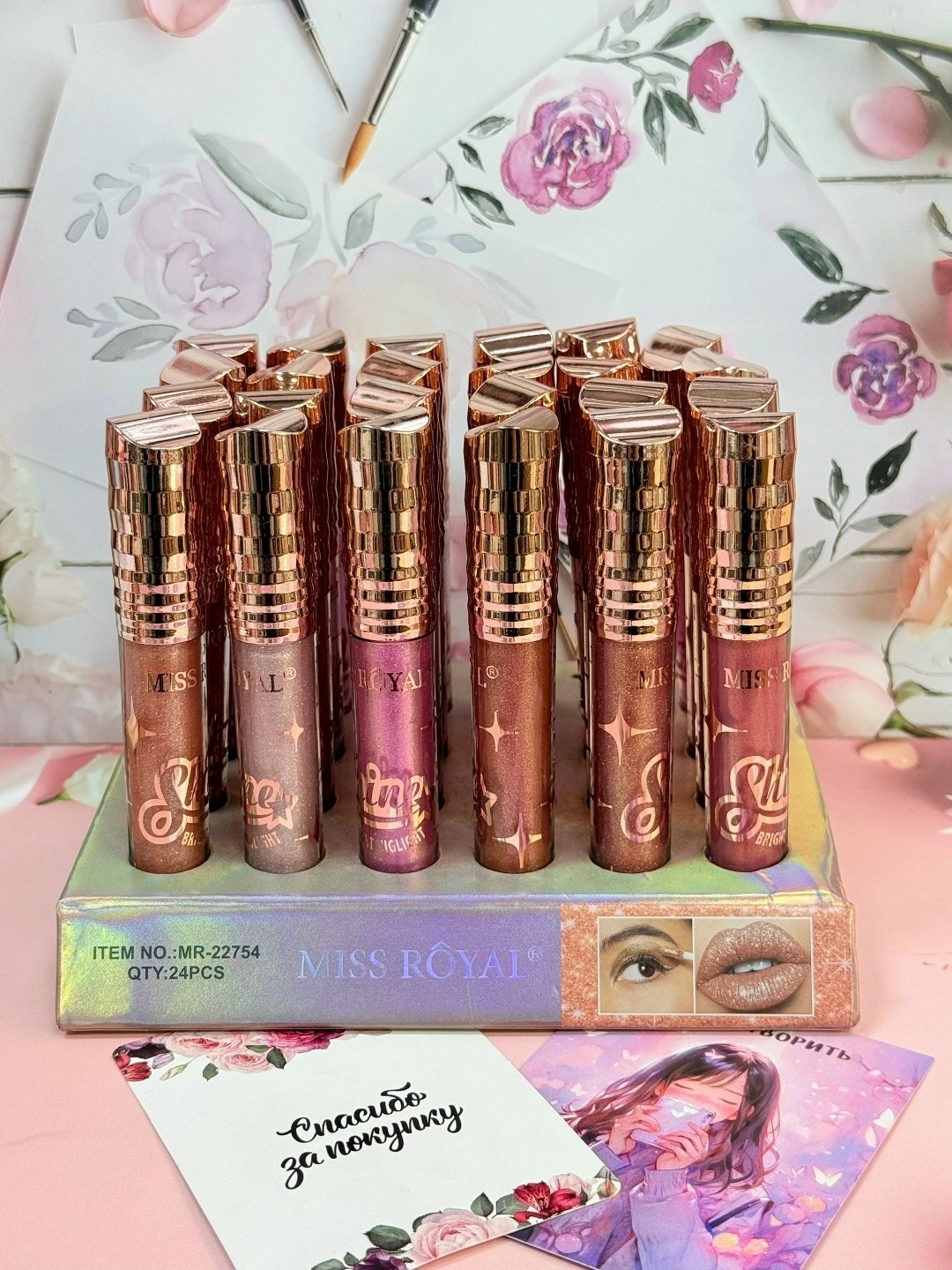 Блеск для губ с разными оттенками,6шт miss royal.