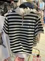 Футболка поло в полоску - это стильное и универсальное рещение для современной девочки Эта модель, выполненная из хлопка с зернистой фактурой, подарит вам комфорт и свежесть в течение всего дня.