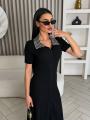 Комфортное трикотажное платье комбинированное красивым жемчугом.