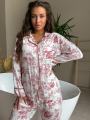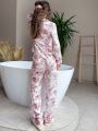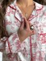 Пижама с утончнным винтажным принтом лгкая, мягкая и безупречно сидит по фигуре Контрастная окантовка и струящаяся ткань создают ощущение уюта и эстетики как с обложки.