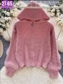 Корейские модные свитера с капюшоном и длинными рукавами на молнии, однотонные вязаные топы, повседневные свободные пуловеры, универсальная.