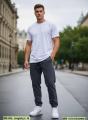 Брюки джоггеры на резинке джинсовые.