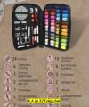 Набор для шитья дорожный в практичном органайзере черного цвета позволяет в одном месте хранить все что может понадобиться для шитья и ремонта в одном месте: 30 высококачествонных стальных иголки, 24 катушки ниток разных оттенков, 5 английских булавок, 10 швейных булавок, 1 ножницы, 1 сантиметровая лента, 5 иголок в пластиковом футляре, 2 нитевдевателя игл, 2 наперстка, 3 пуговицы, 6 кнопок одежных, 1 пинцет, 1 вспарыватель швов, 1 карандаш, 1 кусачки, 1 зажим, 1 магнит Швейный набор всегда будет под рукой и станет отличным помощником и прекрасным небольшим подарком.