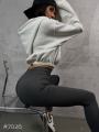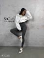 Модель демонстрирует лосины, маркировка s(42).