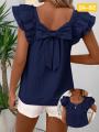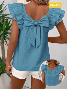 Женская винтажная блузка, свободный пуловер без рукавов с зади на бантиком, лето 2025 Г.
