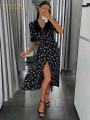 Акцентный воротничок и цветочное платье классный микс офисного и действенного стилей.