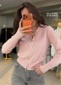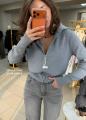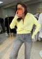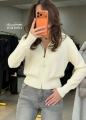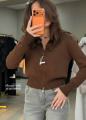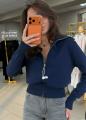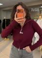 Уютная кофта-кардиган в рубчик с высоким воротником и молнией.