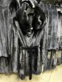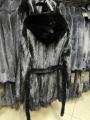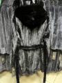 Распродажа цена леташубка из меха европейской норки с капюшоном под меховой пояс 90см длина.