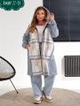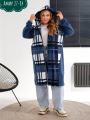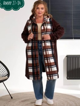 Женская кардиган в клетку с карманами.