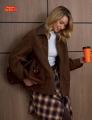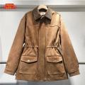 Mодныекоричневые куртки из замши с лацканами в стиле майяр для женщин, повседневные длинные рукава, застежка-молния, карманы, женские пальто на высокой улице,.