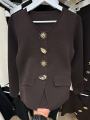 Трендовый жакет с золотыми пуговицами.