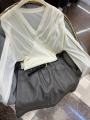 Стильный лонгслив со сборкой на груди.