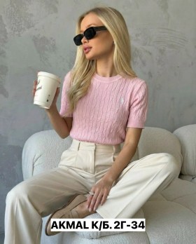 Футболка конное поло с круглым воротом и коротким рукавом из турецкой фигурной лапши.