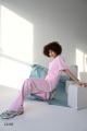 Спортивный костюм состоит из свободной футболки и широких брюк Приятная ткань придат образу расслабленность Идеален для домашнего отдыха или повседневных прогулок.