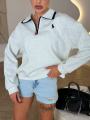 Стильный свитшот-поло на молнии идеальный баланс между спортивной расслабленностью и аккуратной классикой Плотный, мягкий трикотаж держит форму, воротник с контрастной окантовкой добавляет характер, а свободная посадка дарит комфорт на каждый день Легко сочетается с джинсами, брюками и спортивными образами, создавая аккуратный и дорогой вид без усилий.