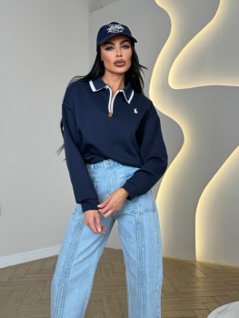 Стильный свитшот-поло на молнии идеальный баланс между спортивной расслабленностью и аккуратной классикой Плотный, мягкий трикотаж держит форму, воротник с контрастной окантовкой добавляет характер, а свободная посадка дарит комфорт на каждый день Легко сочетается с джинсами, брюками и спортивными образами, создавая аккуратный и дорогой вид без усилий.